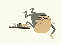 柳原は制作活動の軸とした「船」、柳原の名前が広く知られるきっかけであり、現在でも親しまれている「アンクルトリス」、そして40年以上暮らした横浜港周辺の風景などが作品を形作ってきました。そして、柳原は富士山を背景とした清水港の風景も好み、度々清水港を訪れては散歩をして絵の題材としました。そこで、本展では清水港周辺を描いた作品を加えて、柳原良平の作品世界を形作るものとして紹介します。